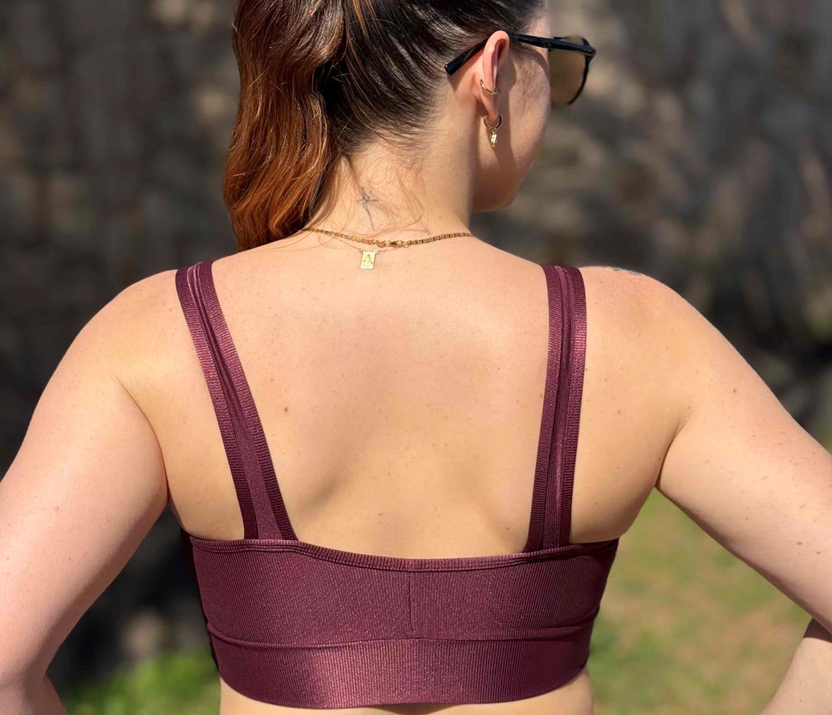 O top Mayara é aquela peça que além de linda, oferece suporte e sustentação pra você pegar pesado no treino! Aposte nesse modelo e deixe seu Look Fitness mais moderno. Elaborado em Poliamida, com leve brilho essa peça tem ajuste perfeito e é super confortável.