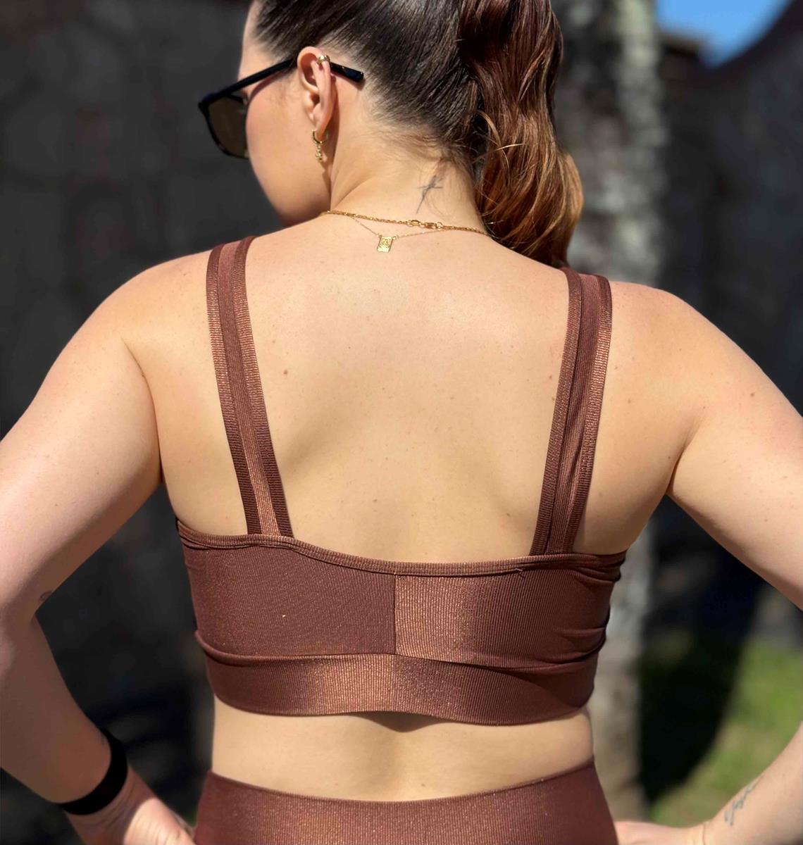 O top Lígia é aquela peça que além de linda, oferece suporte e sustentação pra você pegar pesado no treino! Aposte nesse modelo e deixe seu Look Fitness mais moderno. Elaborado em Poliamida, com leve brilho essa peça tem ajuste perfeito e é super confortável.