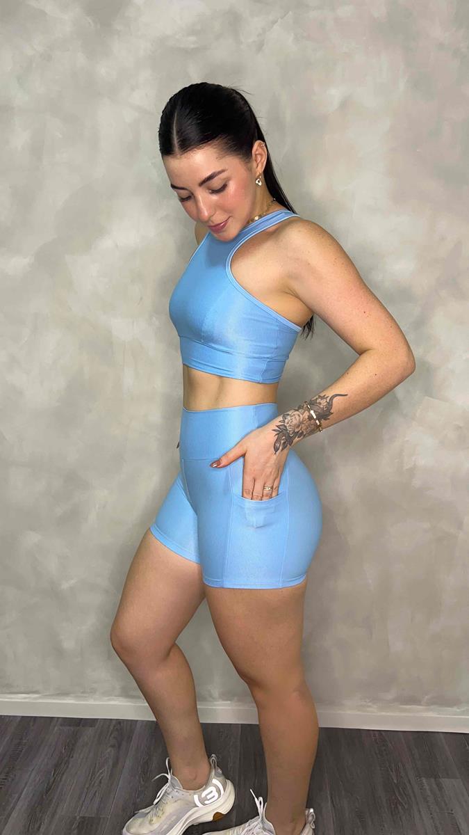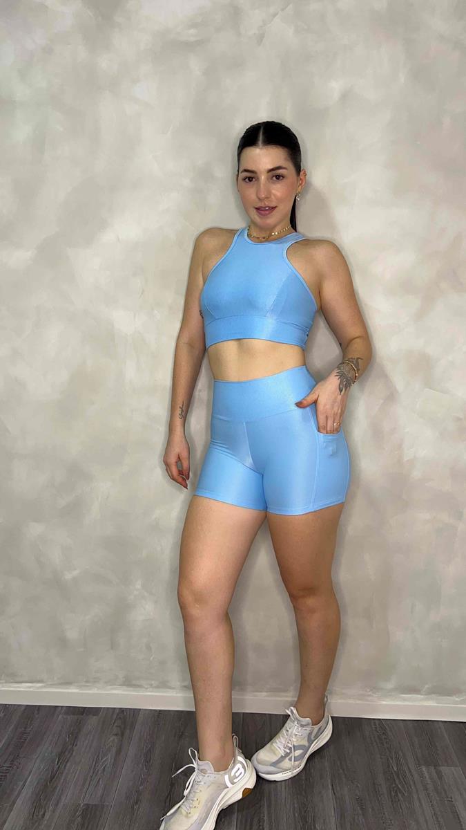 O Conjunto Fedra azul é aquela peça que além de linda, oferece suporte e sustentação, possui bolsos na parte lateral do short pra você ter ainda mais facilidade na hora do treino! Aposte nesse modelo e deixe seu Look Fitness mais moderno.