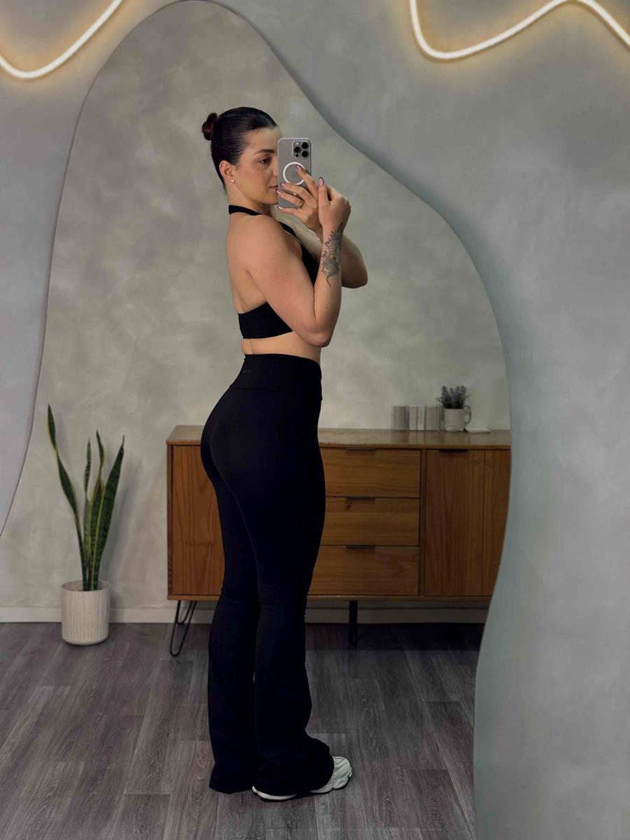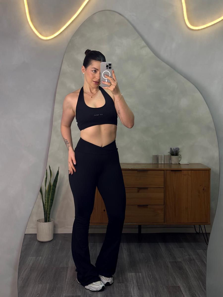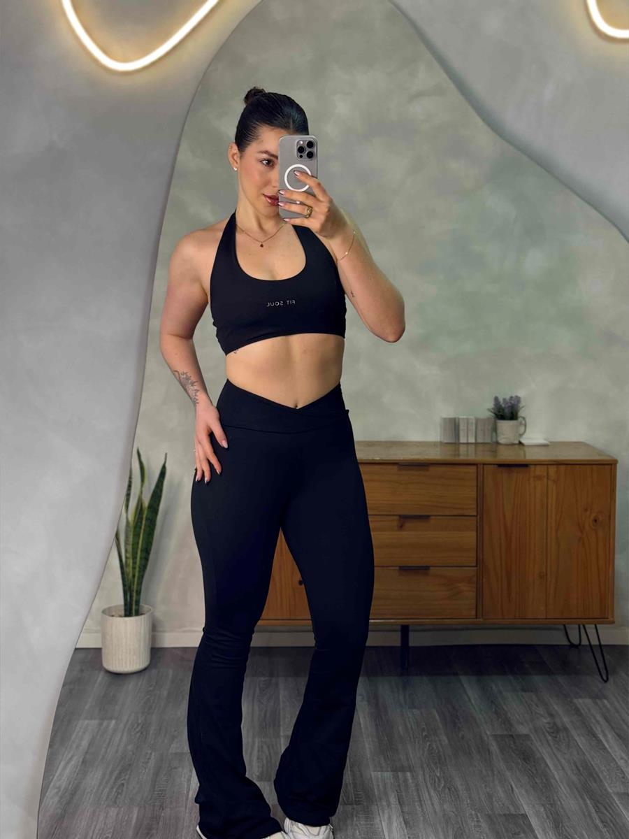 A Legging Flare é a combinação perfeita entre conforto e estilo. A cintura alta e cós transpassado modela a silhueta enquanto a barra flare proporciona fluidez e elegância, ideal para transitar entre o treino e o dia a dia com personalidade.