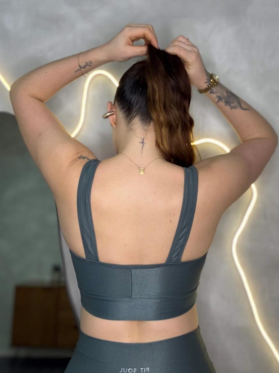 O top Kathleen é aquela peça que além de linda, oferece suporte e sustentação pra você pegar pesado no treino! Aposte nesse modelo e deixe seu Look Fitness mais moderno. Elaborado em Poliamida, com leve brilho essa peça tem ajuste perfeito e é super confortável.